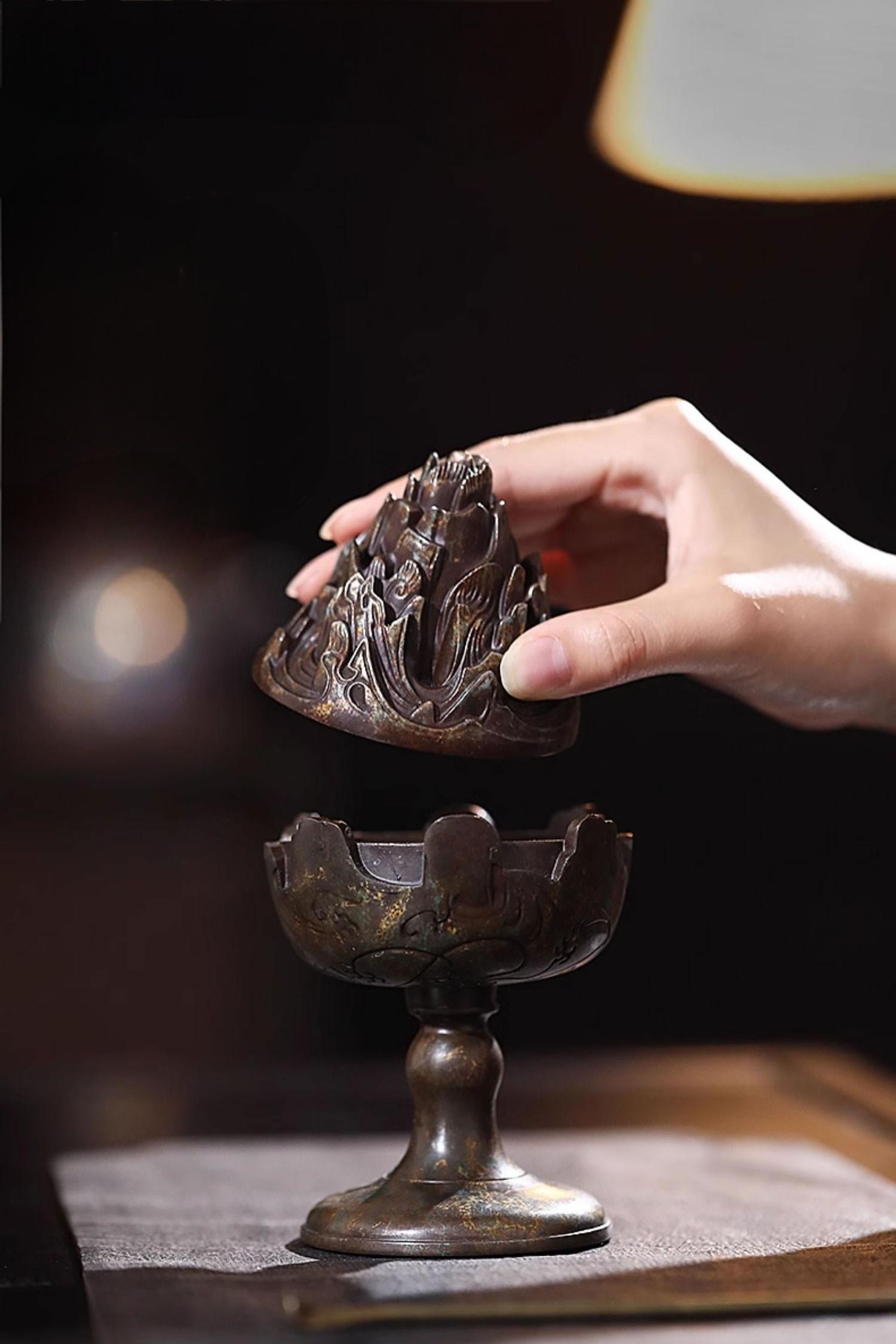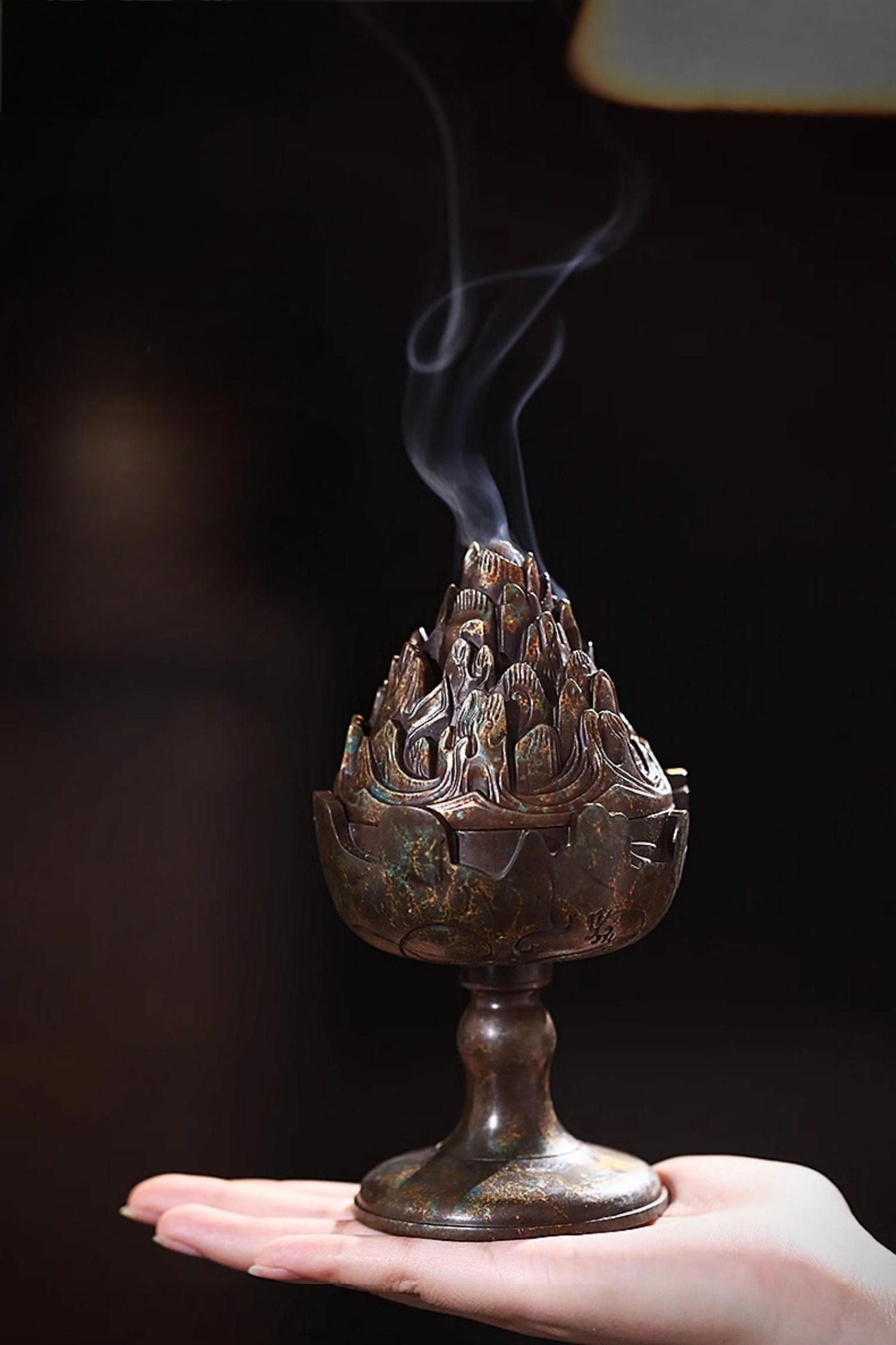 The Antique-Inspired bronze mountain Boshan incense burner(Boshan Lu or Boshanlu) is a stunning tribute to ancient Chinese craftsmanship. Each boshanlu is meticulously handcrafted, with layers of mountains intricately carved to mimic the majestic peaks of nature.