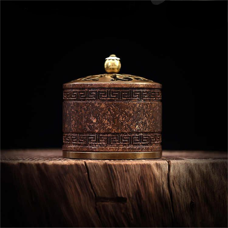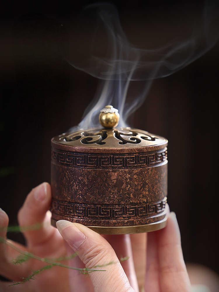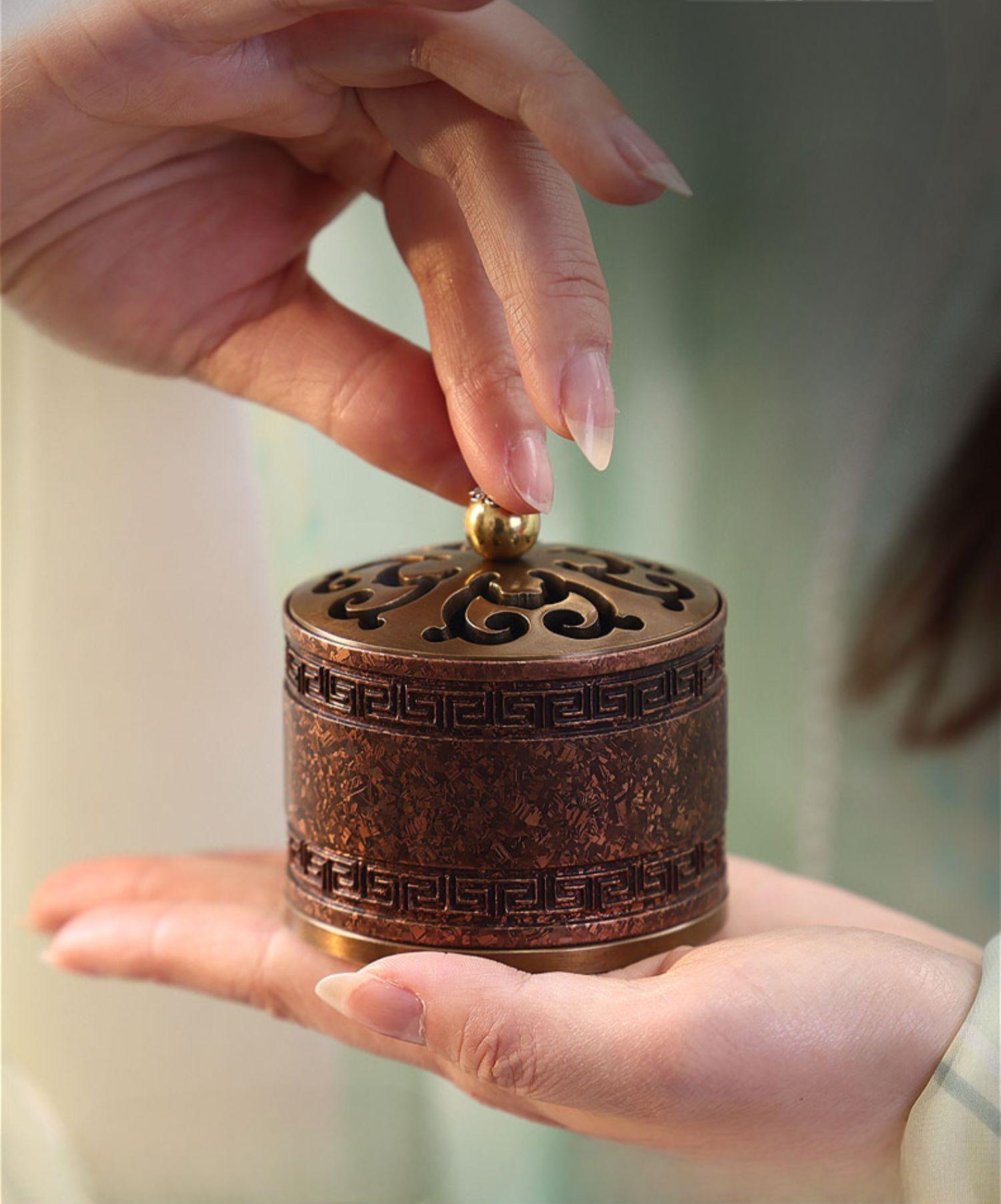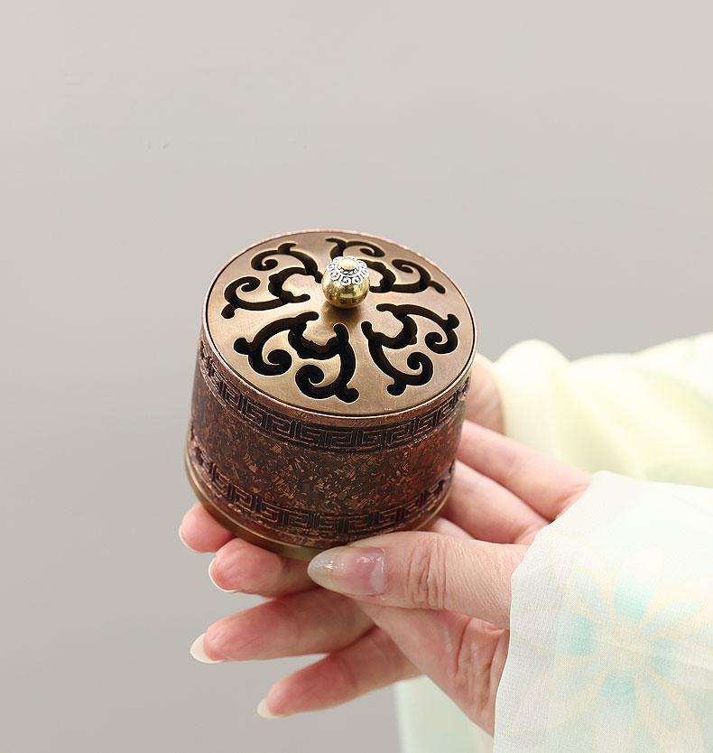 Handcrafted bronze incense burner featuring intricate patterns and timeless craftsmanship, perfect for enhancing your space with calming scents.